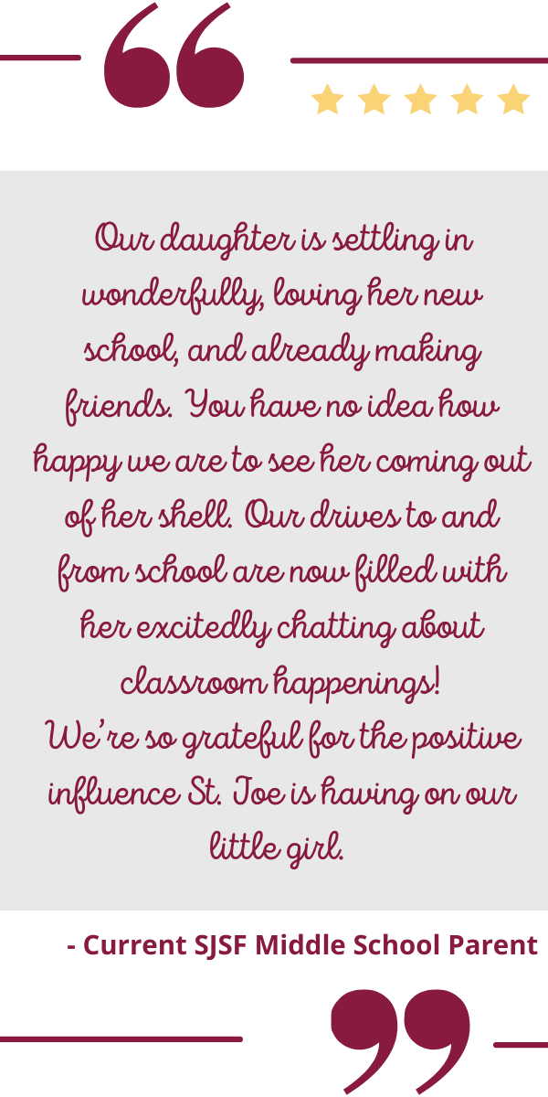 St. Joseph School-Fullerton is proud to recognize the outstanding achievements of our middle school students who earned Honor Roll for the first trimester of the 2025-2026 school year. This accomplishment reflects dedication, perseverance, and a strong commitment to academic excellence.
